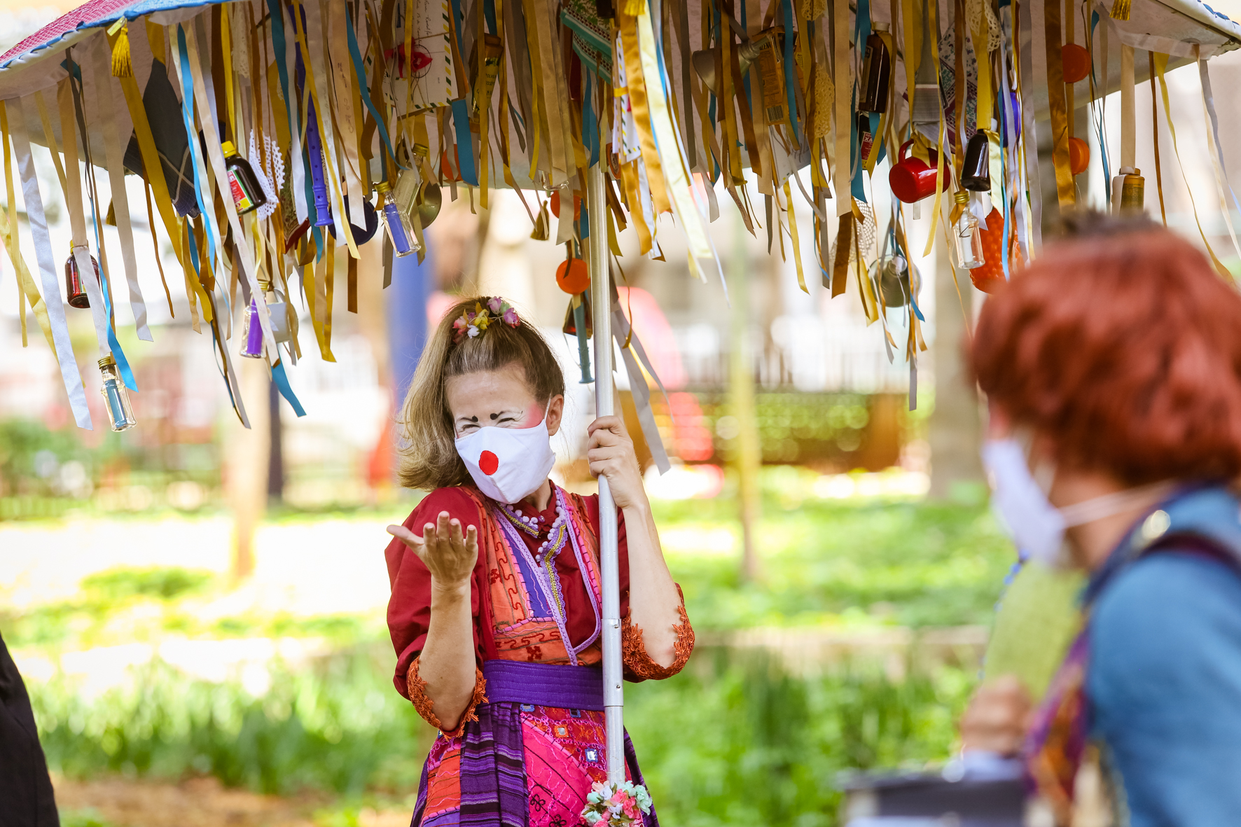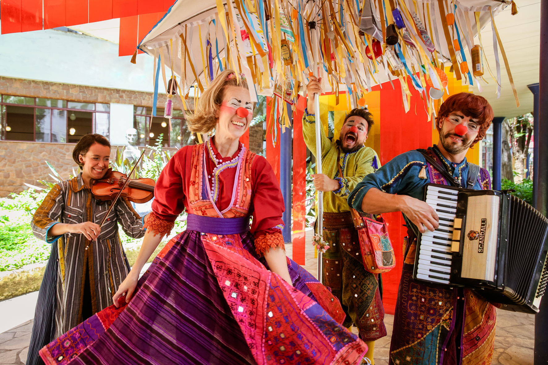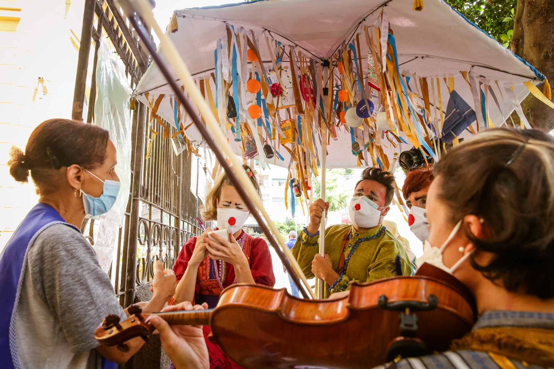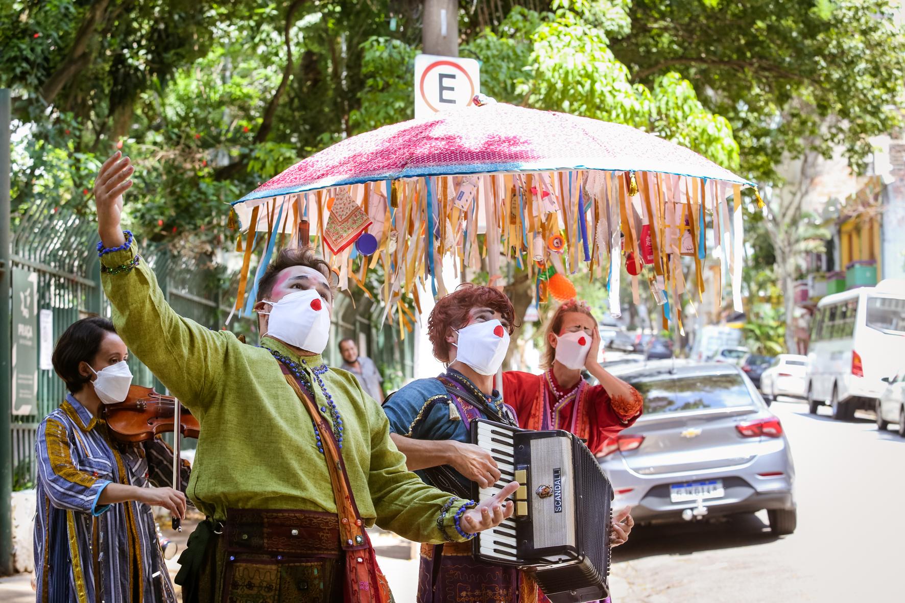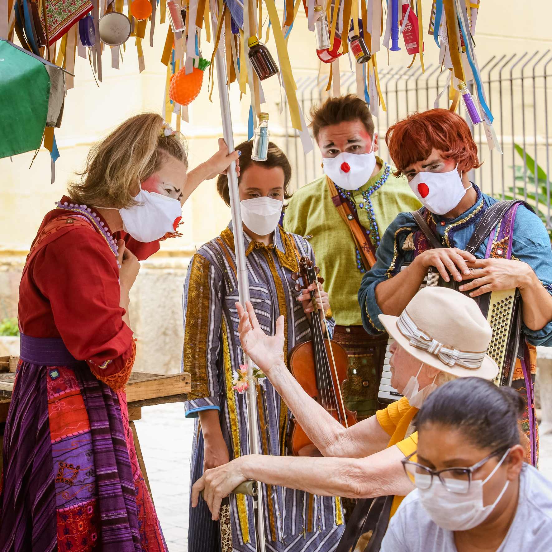 Nessa intervenção cênico-musical intimista, os três palhaços do grupo, acompanhados por uma musicista, carregam um grande “guardador de memórias”. Esse elemento, apoiado pela interação poética do elenco, cria um ambiente propício para uma abordagem lúdica dos passantes, no intuito de estimular a narrativa de experiências e memórias que são registradas, guardadas e trocadas por outras que foram recolhidas em outros territórios.